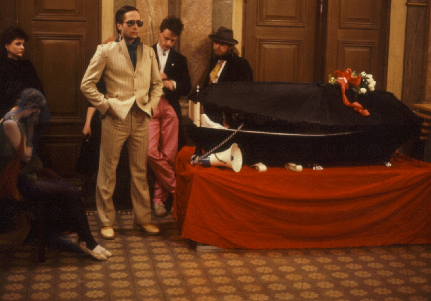 Illan esiintyjinä oli n. 30 muusikkoa sekä nykytanssin, nykyteatterin sekä performanssitaiteen edustajaa. Visuaalisuutta vahvisti maskeeraus, jolla luotiin koko joukolle illan teemaan yhtenäinen ilme. Vanhalla tapahtui 3-4 tunnin ajan: ryhmät improvisoivat ja esiintyivät joka puolella rakennusta. Illan päätteeksi musa soi ja kansa sai purkaa ihmetystään. Ilta huipentui arkun hautaamiseen jälkeen trion musiikkiesitykseen, jossa flyygeli hajotettiin palasiksi. Triomme muusikot olivat Vinski flyygelissä, Ilkka syntetisaattoreissa sekä saksofonisti, jonka nimeä en muista. Tämä "ainutlaatuinen esitys" oli tarkoitus äänittää, mutta äänitys epäonnistui täysin (niin kuin vain ammattilaiset osaavat töpätä).