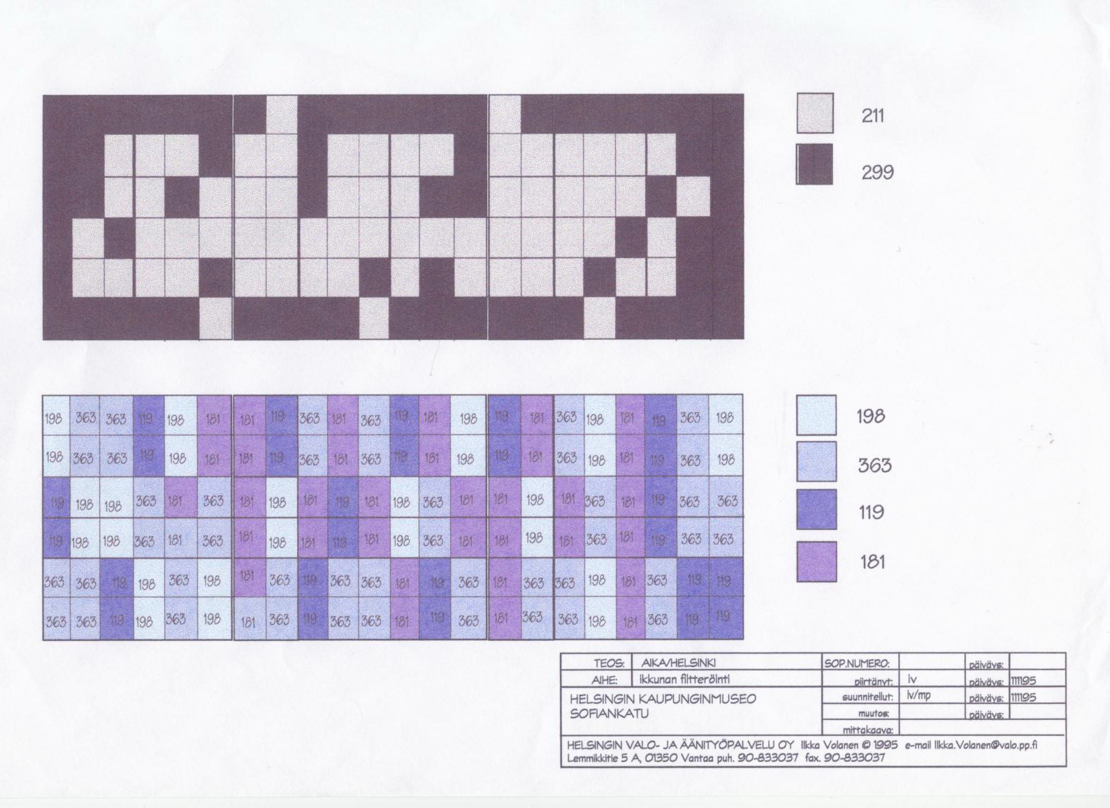 Niiden päälle asennettiin neljää erilaista sinistä kalvoa rytmisesti