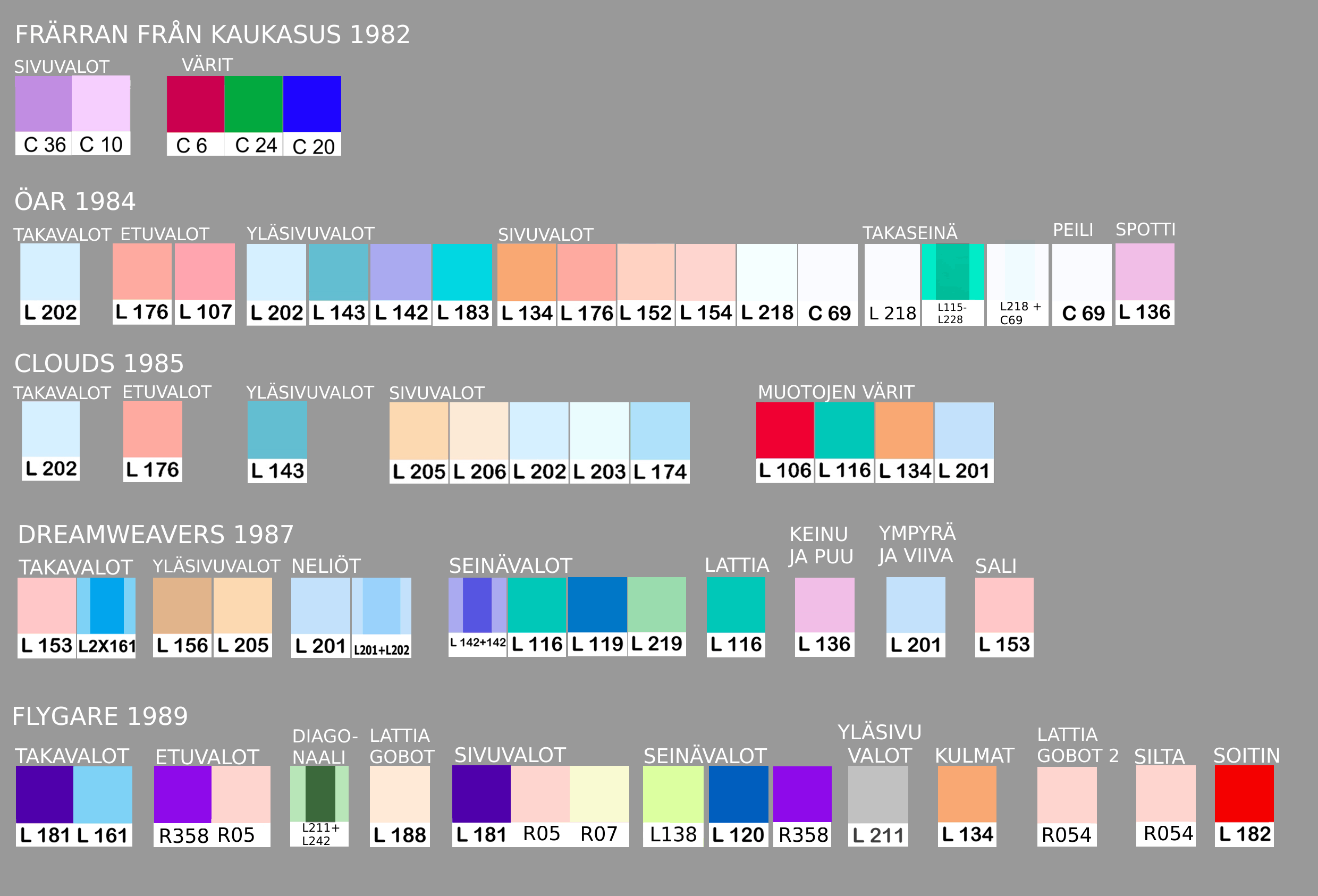 Yksinkertaistaen voin sanoa, että jo tuolloin valonheittimet olivat myöhemminkin käyttämäni perusrakenteen mukaisia: takavalot, yläsivuvalot, etuvalot ja