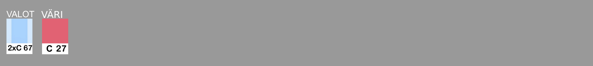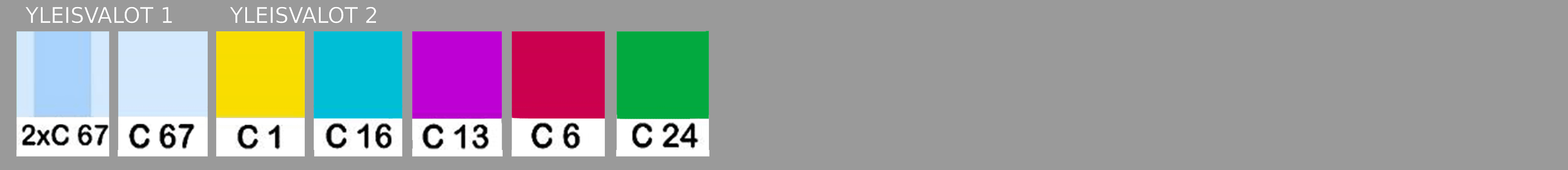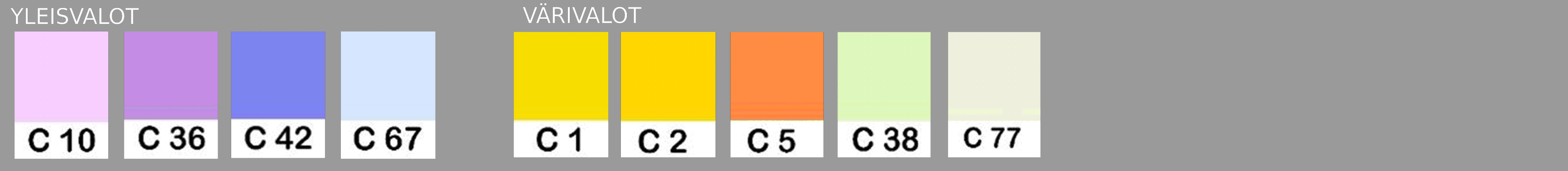 Valokiilat joissa ovat värit C67 ja toisessa C10 synnyttävät osuessaan yhteen uuden värin C36. Samoin C42+C5 synnyttävät värin C10, joten