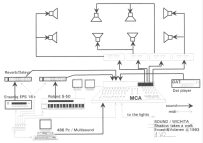 Teatterimuseon valokartta, luonnostelua, Wichita äänikytkentöjen suunnitelma, valokartta Teatterimuseo, A3